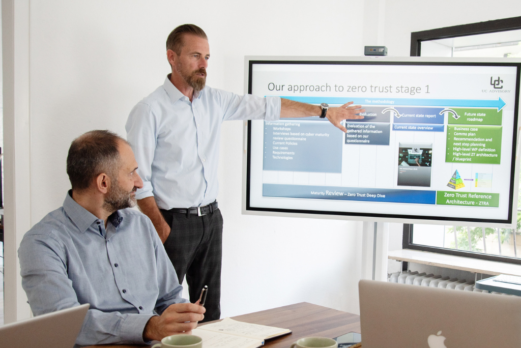 Wer wir sind: Wir sind die geschäftsführenden Gesellschafter der UC Advisory GmbH. Wir bieten fachkundige Beratung und Dienstleistungen zum Schutz der Informationssysteme und Daten unserer Kunden vor unbefugtem Zugriff, Diebstahl und Beschädigung an. Darunter fallen Risikobewertungen, Sicherheitsaudits und Bewertungen, sowie strategische Beratung im Bereich digitale Identitäten, Zero Trust und Ransomware Prävention.